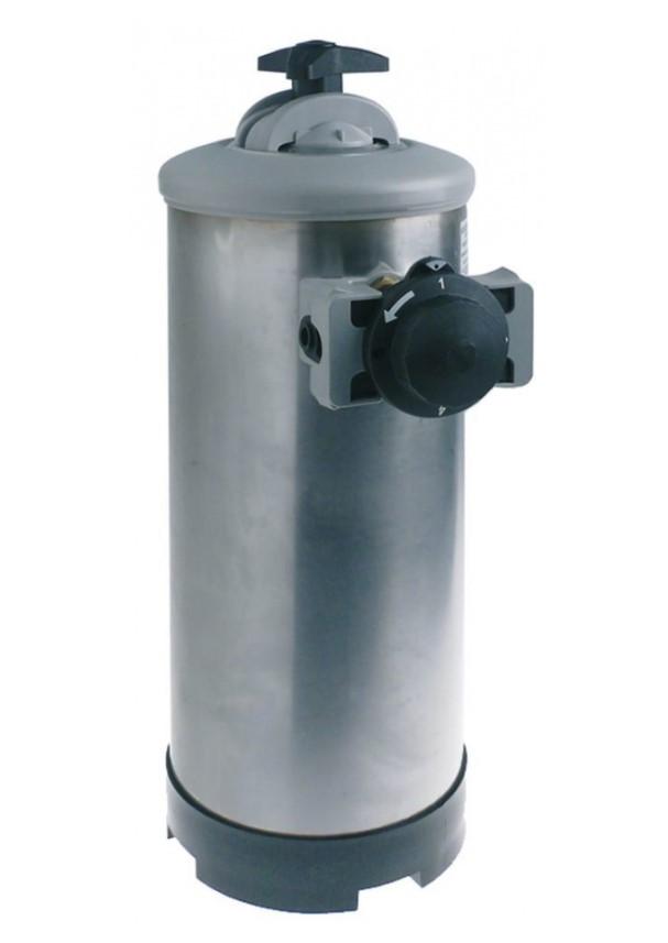 pour traitement de l'eau à usage TECHNIQUE capacité bouteille INOX 20 L raccord 3/8" dimensions: hauteur 900 mm - ø 185 mm résine contenue 15 L sel pour régénération(NaCl-sel de table)3 Kg