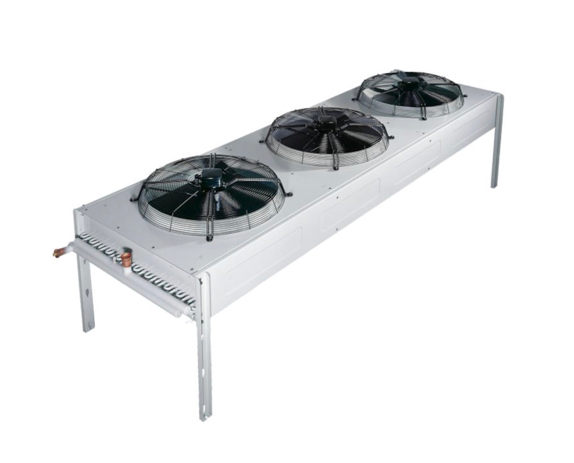 Condenseur soufflage vertical / horizontal WA de 1 à 3 ventilateurs. Tubes cuivre rainurés 3/8 et pas d'ailettes 2,12 mmCarrosserie en tôle galvanisée avec peinture époxy et visserie inox garantissant une excellente résistance à la corrosion (RAL 9002 gris clair). Ventilateurs hélicoïdes IP54 à 2 vitesses ?/Y 400 V. Appareils livrés ventilateurs non montés. Hauteur indiquée pour montage en soufflage vertical.