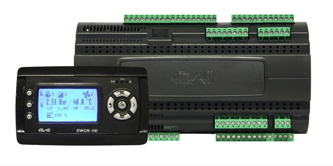 Régulateur pour installations complexes et évoluées Les controlleurs EWCM 8000/9000EO sont conçus pour les centrales à détente directe et les centrales à double circuits, offrant des solutions pour les installations en HP flottante. Compatibles avec une large gamme de réfrigérants tels que R22/R717 (NH3) /R134A /R410A /R502 /R417A /R404A /R744 (CO2) /R407C /R402A /R507 /R402B /R290 /R427 /R600a.