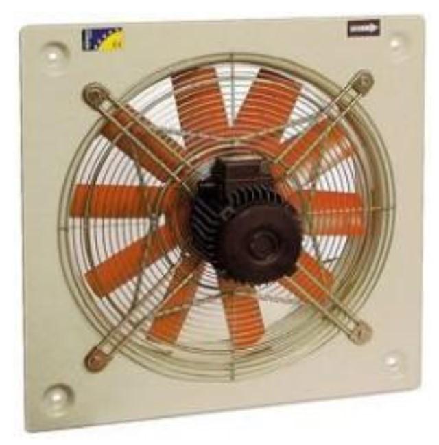 VENTILATEUR HÉLICOÏDE HC-40-4M/H SODECA avec embase en tôle d’acier.